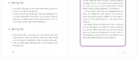 '은빛여정'은 각 권이 16주 과정으로 이루어져 있어 한 학기에 한 권씩 이수하여 전체 2년(4학기)에 걸쳐 성경 전반에 대해 익힐 수 있습니다. <은빛여정>은 관련 성지 사진을 컬러 화보로 엮어서 신앙과 역사의 현장을 생생하게 느낄 수 있도록 하였습니다. <은빛여정>은 부교재를 활용하여 `성경 그림 색칠하기`와 `성경 옮겨 쓰기`, `성경 덧쓰기`와 같은 다양한 활동과 충분한 나눔을 할 수 있게 하였습니다. <은빛여정>은 한글을 모르는 어르신들을 위해 부교재1에 `덧쓰기 성경` 부분을 첨가하였습니다. `덧쓰기`는 순 우리말로, 이미 씌어진 글자 위에 겹쳐 쓰는 것을 의미합니다. <은빛여정>은 일반적으로 `노년의 색`이라고 알려진 무채색 사용을 과감히 탈피하여 표지에서부터 산뜻한 파스텔 톤 색깔을 사용하였고, 교재 내용 전체를 컬러로 꾸몄습니다.