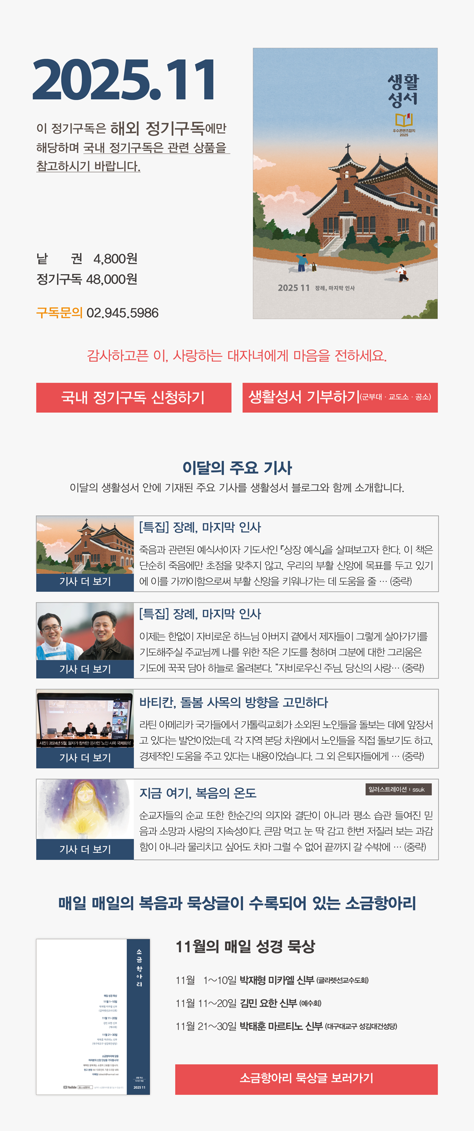 매달 받아보는 『생활성서』는 정성과 사랑이