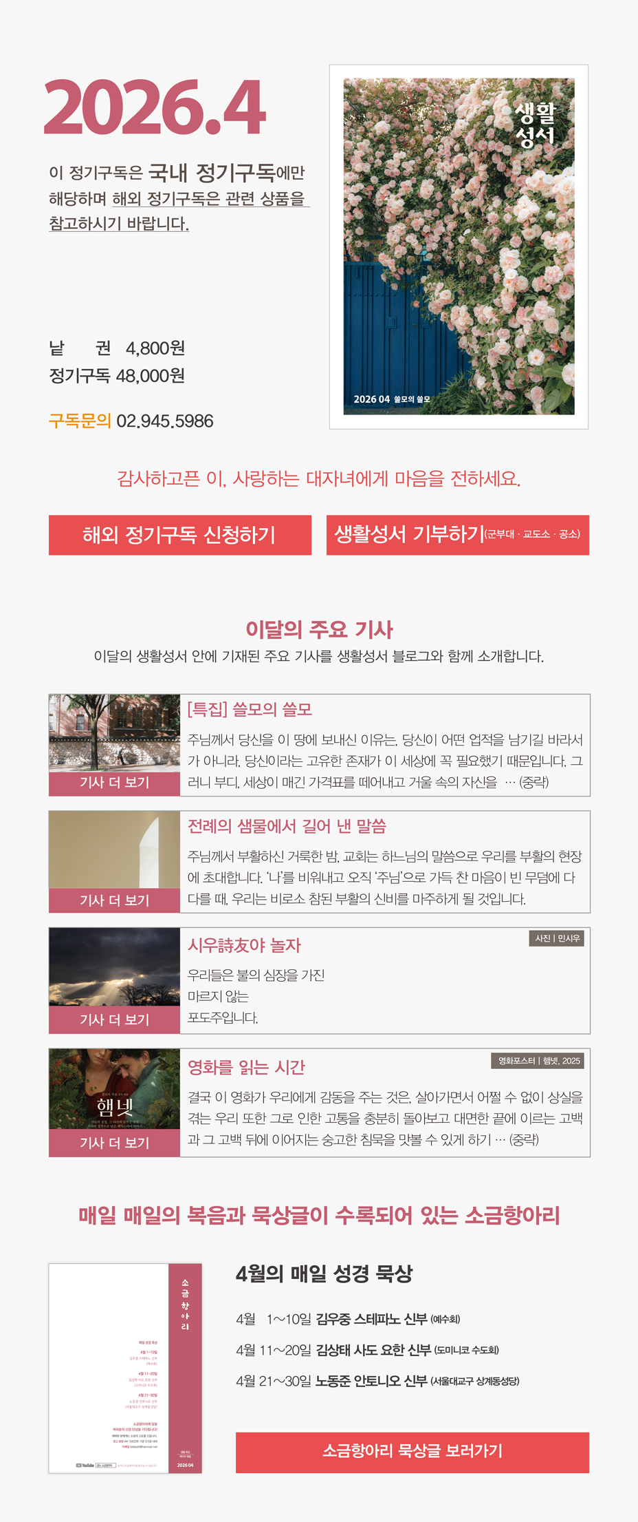 매달 받아보는 『생활성서』는 정성과 사랑이